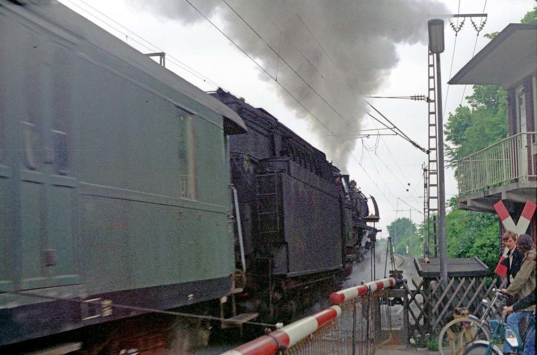 Die Attraktivität von Rheine und der Emslandstrecke mit dem letzten dampfgeführten Schnellzugverkehr bei der DB war international bekannt. Nach unserem Telefonat wurden wir von einem asiatisch aussehenden Eisenbahnfreund angesprochen: „Can you tell me the way to the Bahnbetrrriebswörk?“ Wir waren vorbereitet und hatten uns vor der Tour über den örtlichen Buchhandel in Hagen einen gedruckten Stadtplan von Rheine bestellt. So konnten wir nun unser Wissen über den nicht ganz knappen Weg vom Bahnhof Rheine zum Bw in Richtung Hauenhorst weitergeben.