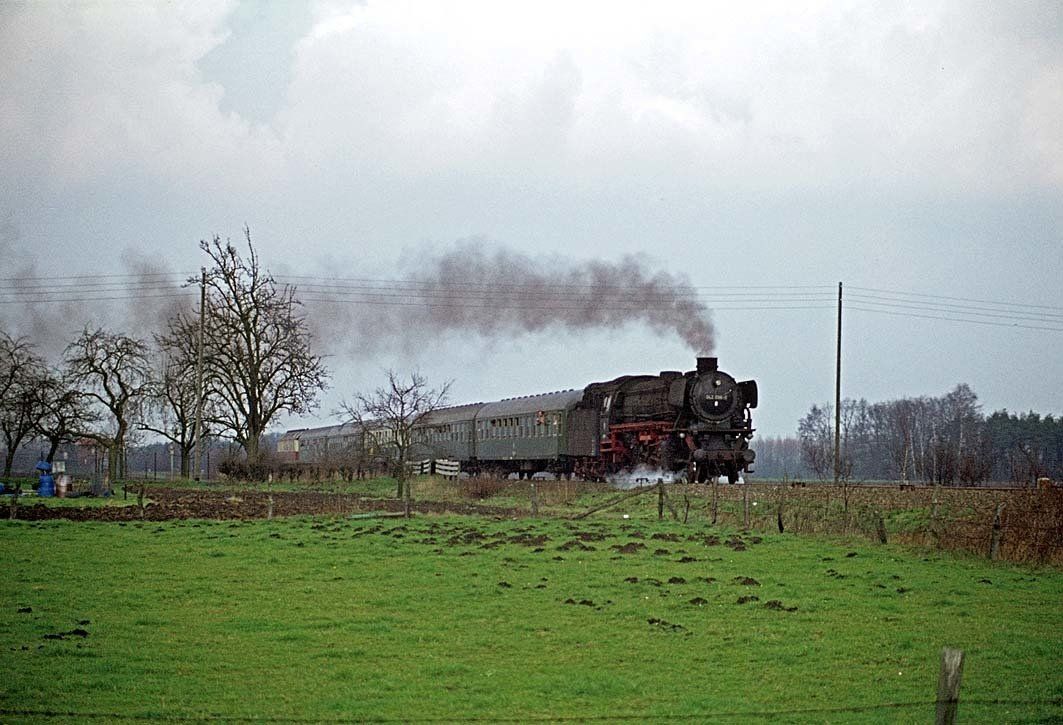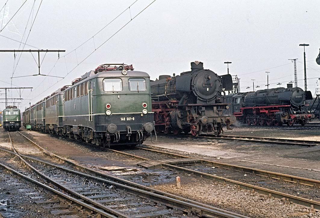 Und dann ging es weiter. Die Touren im Januar und April 1975 wurden noch per Bahnanreise durchgeführt. Die Fotomotive beschränken sich deshalb in Rheine auf den Bahnhof, das Bw und deren nähere Umgebung. Später ermöglichte mir mein eisenbahnbegeisterter Erdkundelehrer Mitfahrten in seinem PKW und somit neben den obligatorischen Bw Besuchen auch Aufnahmen an der Emslandstrecke.