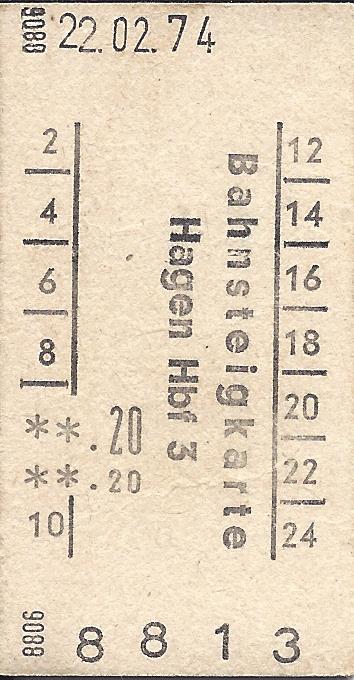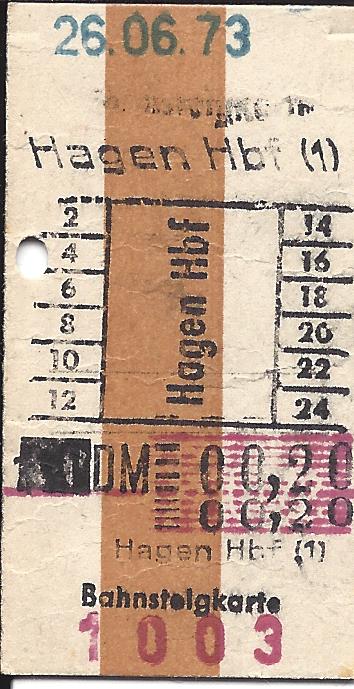 Hier der Abfahrtsplan für den Sommerfahrplan 1974 Hagen Hbf:
