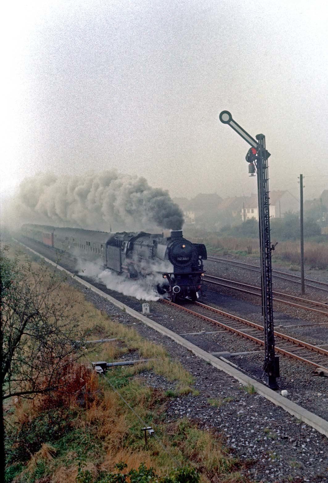 What a fortunate coincidence: my geography teacher, who was a railway enthusiast, also turned up in his former home town of Warburg. Looking ahead I had also only bought a single ticket and in the evening I was taken back home by car together with a guinea pig. The A44 in the direction of the Ruhr area was not quite finished at that time, so that we had enough time for future planning in the traffic jam on the B1. The plan matured to see the locomotive in operation in autumn. This was then implemented in 1975 and 1978. I am still grateful, because without the free rides I would never have been able to take these pictures.
