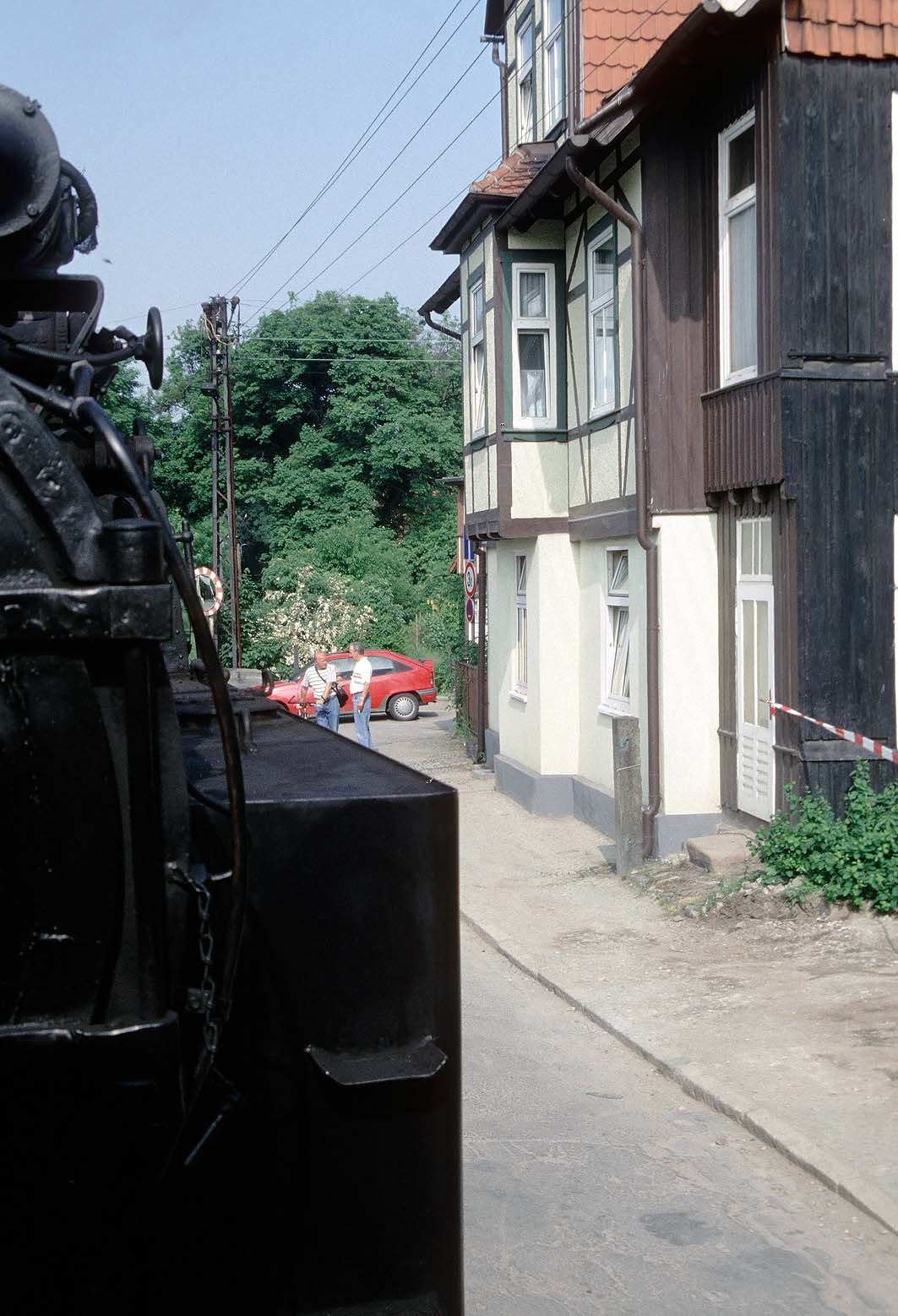 It starts with train 8953 pulled by 99 7246-4 from Gernrode. 20.00 DM is the fun for the trip from Gernrode to Wernigerode. The departure from Alexisbad to Harzgerode and back is charged separately by the train crew with 2.00 DM. In Sternhaus-Ramberg we cross the counter-train 8954 pulled by 99 5906-5, which already waits for us there. Here we have reached the highest breakpoint. Now it goes down to Alexisbad.