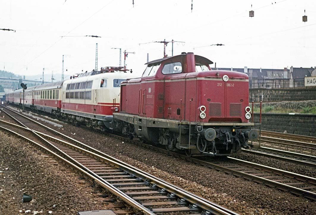 Wie TEE Prinz Eugen auf dem ersten Bild, wurden die Züge aus Richtung Wuppertal mit Dieselloks in den Hauptbahnhof gezogen.