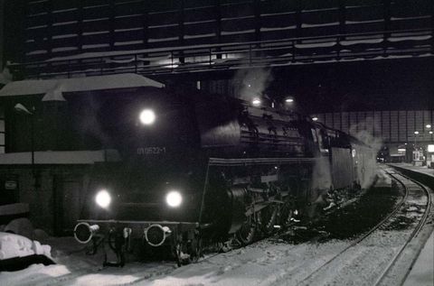 Doch nicht nur im Osten Berlins gab es Dampfbetrieb. Am Abend des 16. Februars 1979 habe ich nach Erwerb einer Bahnsteigkarte die 01 0522-1 vor dem D 1101 von Berlin-Friedrichstraße nach München Ost im Bahnhof Zoo erwischt.