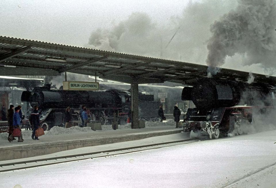 Bereits bei vorangehenden Foto-Touren durch Ostberlin zusammen mit meinen Eisenbahnfreunden Martin und Klaus aus Hagen hatten wir am Bahnhof Baumschulenweg einen Ostberliner Eisenbahnfan kennengelernt. Mit ihm hatten Martin und ich uns für ein Treffen an den Februartagen zum Dampflok-Verfolgen und Fotografieren verabredet.