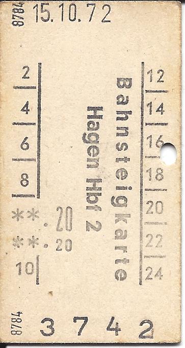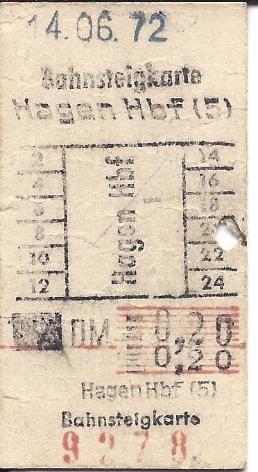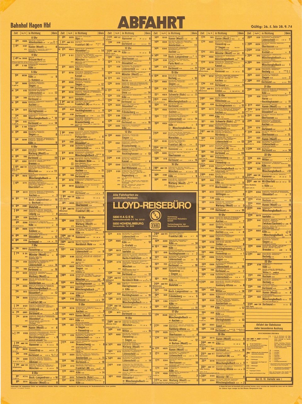Hier der Abfahrtsplan für den Sommerfahrplan 1974 Hagen Hbf: