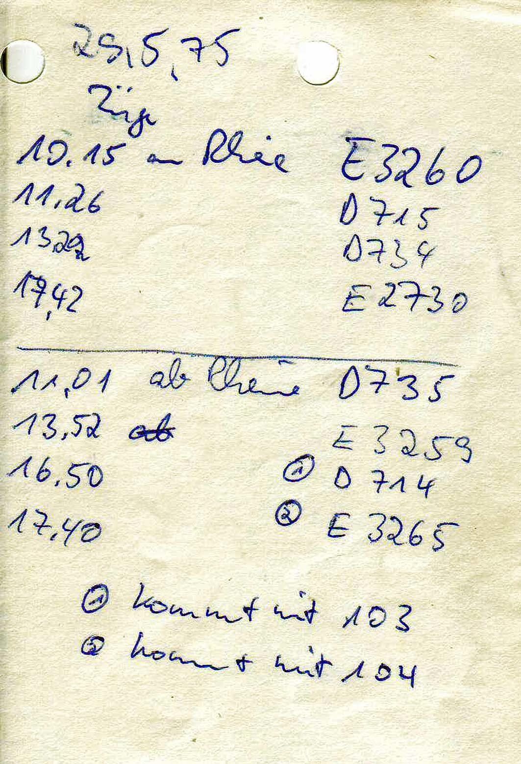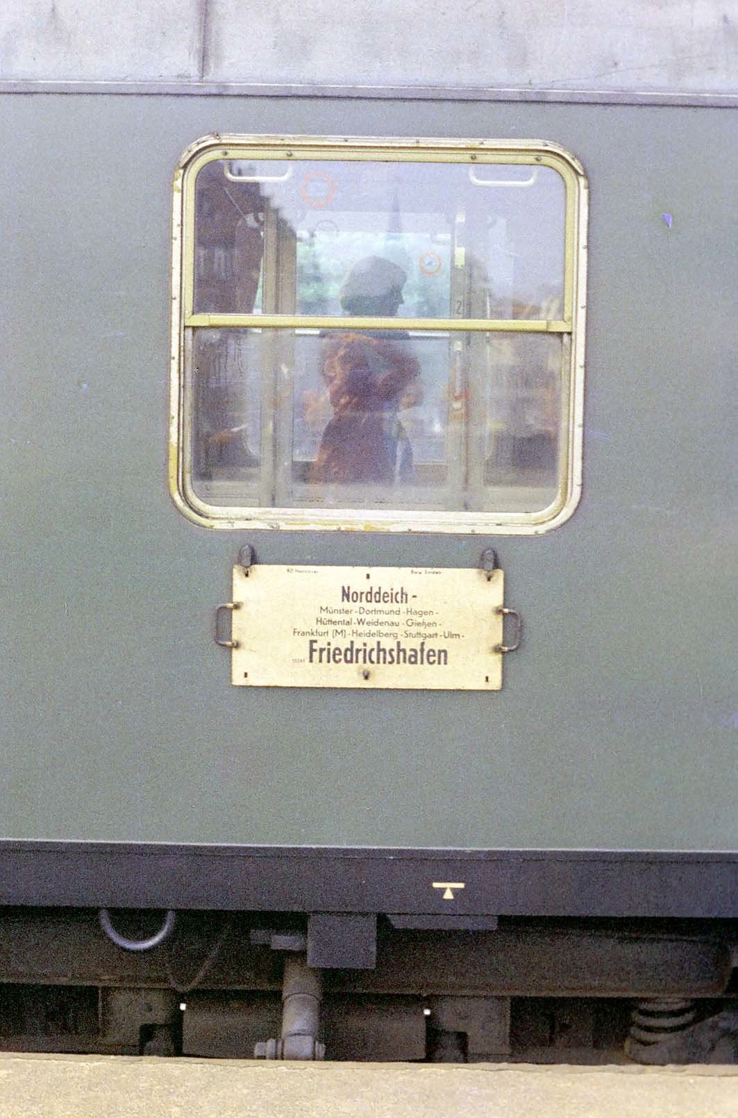 In 1975 there were still through coach connections with trains on routes that are very unusual today. Here you can see the train running sign of a D 715 course car. Norddeich-Münster-Dortmund-Hagen-Hüttental-Weidenau-Giessen-Frankfurt(M)-Heidelberg-Stuttgart-Ulm-Friedrichshafen
