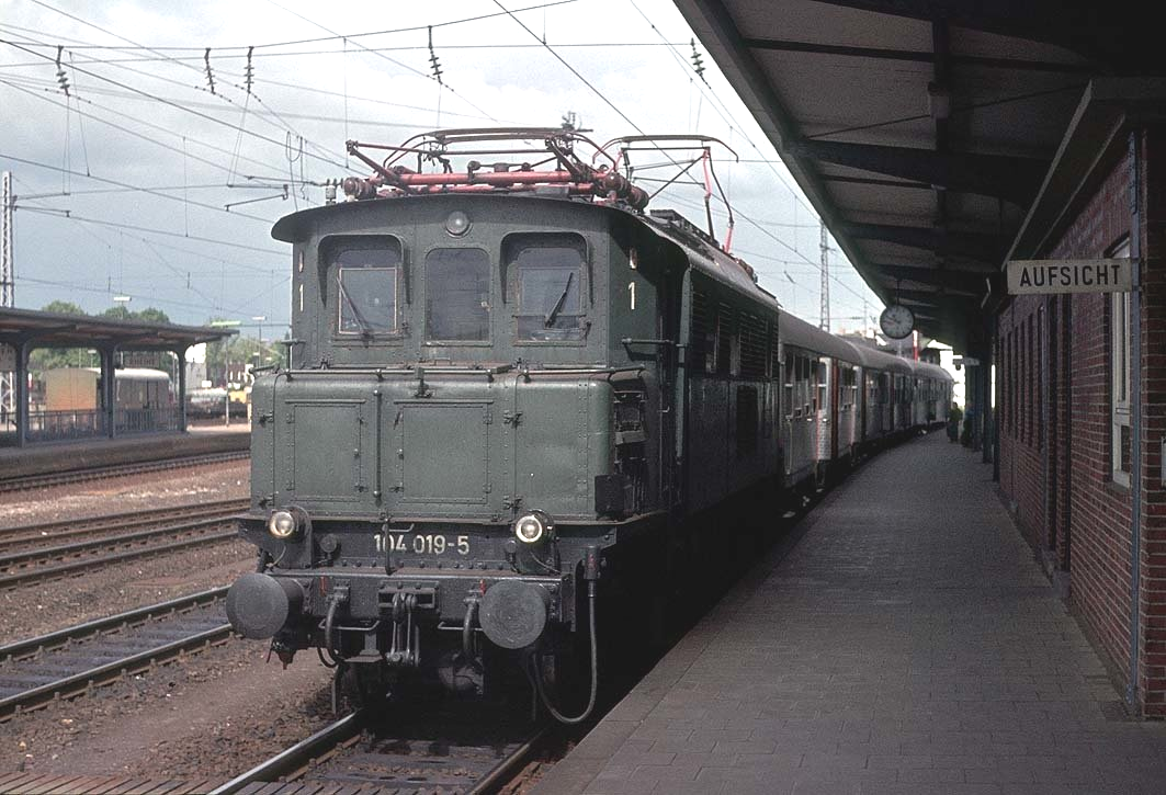 no more steamers were running in Rheine, then there was at least the possibility to take a picture of the old locomotive 104 019-5 with a set of Silberlinge in the station.